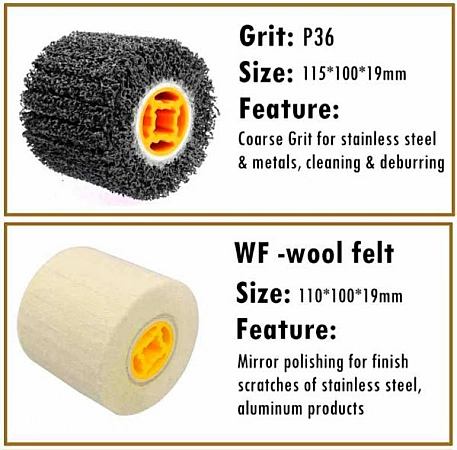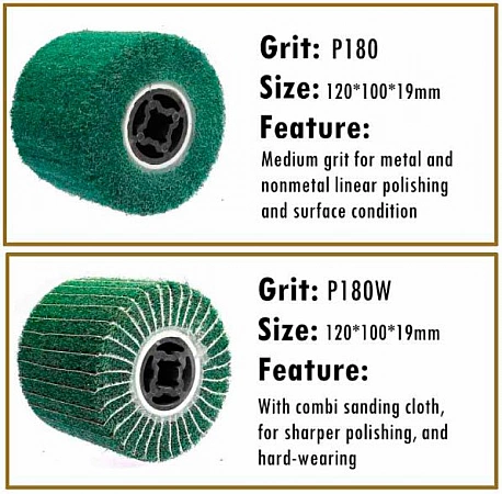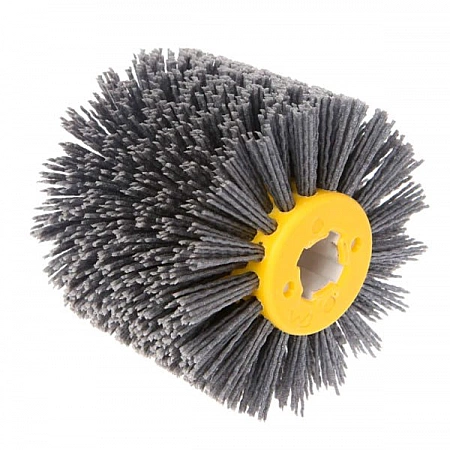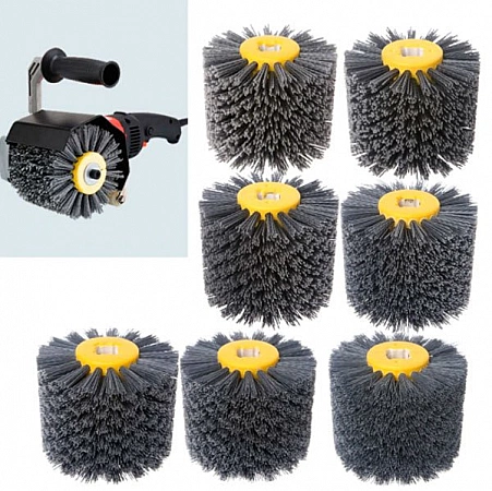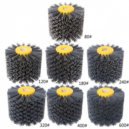 Ennek a fúvókának a működési elve a darálón a kefés hatáson alapul. A sörték mobilitása miatt a puha farostokat választják, míg a keményeket kevésbé csiszolják. A kefe minden sörtéjét csiszolóanyag borítja, amely kiválasztja a farostot. Strukturált felület jön létre. A csiszolás közbeni átmenetek lágysága a kiválasztott kefeszemcséktől függ. Az Aliexpressen 7 lehetőség van 80 és 600 egység közötti szemcsemérettel. A fúvókák csak befejezésre alkalmasak. Nem alkalmasak sok gyantával, kéreggel, koszos rönkökhöz. Minden fúvóka nem hagy nyomot a felületen, de követnie kell a daráló beállításait - nagy sebességnél a fa megéghet.
