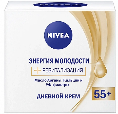 A Nivea egyik legolcsóbb, de ugyanakkor nagyon hatékony terméke az érett bőr számára, sokoldalúsága (minden típusú epidermiszre alkalmas) és kiváló összetétele miatt, szulfátok, parabének és szappan nélkül, beleszeretett az orosz vásárlókba. Az "Energy of Youth 55+" krém két formátumban érhető el - nappali és éjszakai, aminek köszönhetően kettős hatása van, és rendszeres használat mellett még felnőtt nőknél is képes minőségileg megváltoztatni a bőr állapotát. A természetes argánolajból és szőlőtörkölyből álló komplexum segít pótolni a hiányzó nyomelemeket, belülről táplálja és hidratálja a bőrt. Az UV-szűrők (SPF 15) jelenléte pedig segít megvédeni a bőrt a napsugárzás negatív hatásaitól. A krém kellemes állagú, gyorsan felszívódik, nem hagy maga után ragacsos vagy olajos film érzetet az arcon. Kiváló lehetőség olcsó, de nagyon jó minőségű kozmetikai termékhez, kifejezett öregedésgátló hatással.