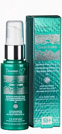 A krém a halántékvipera mérgének tripeptidjét tartalmazza, amely ellazítja az arc izmait. Simító hatás.