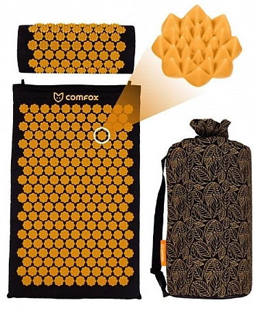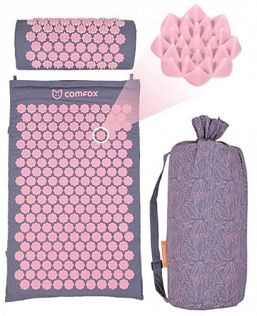 Kiváló minőségű hipoallergén anyagokból készült egyedi, modern és legesztétikusabb applikátor. A tűk itt rozetták formájában vannak elrendezve, és lótusz alakúak. Ennek a kialakításnak van a leglazítóbb hatása, oldja az izmok feszültségét, és egyszerűen kellemes a szemnek. A készlethez tartozik egy szőnyeg és egy henger, így egyszerre masszírozhatja a hátát és a nyakát. Töltőanyagként itt memória effektusú Memory Foam anyagot használnak. Az emberi test alakját veszi fel, aminek köszönhetően kényelmes pozíciót és magas ortopédiai hatást biztosít. A kellemetlenségek csak a megszokásból származhatnak, mivel itt a tűk meglehetősen élesek, nagyok, ezért erősen belemélyednek a bőrbe.