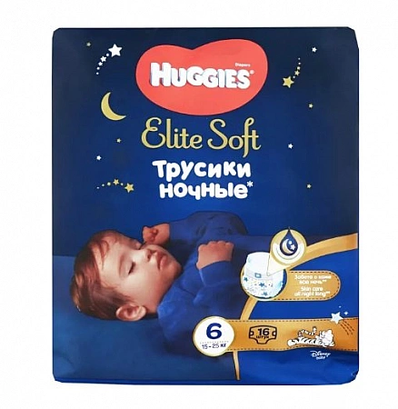 A Huggies Elite Soft éjszakai bugyi négy méretben kapható, hogy 3 hónapos és 3-5 éves kor közötti gyermekek számára megfelelő legyen. A kétrétegű nedvszívó réteg és a légáteresztő anyagok kombinációja lehetővé teszi, hogy szárazon maradjon szivárgás nélkül, és gondoskodjon a baba bőréről. A nedvességjelző jelzi, hogy mikor kell lecserélni az alsónadrágot, bár a legtöbb esetben nem kell egyik napról a másikra cserélnie. Az Elite Soft hálóruha fiúk és lányok számára egyaránt alkalmas, nemek szerinti felosztás nélkül. Valaki ezt hátránynak tartja, de a gyártó azt állítja, hogy a bugyi formája és a nedvszívó réteg elhelyezkedése úgy van kitalálva, hogy minden gyermek számára optimálisan megfeleljen.Általában a modell jó értékeléseket kap, meglehetősen népszerű.