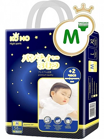 A japán Ko Mo Night bugyipelenkák a puhaság, a szárazság és a kiváló légáteresztő képesség kombinációja, kényelmes alvást biztosítva a gyermeknek egész éjszaka. A rugalmas derékpánt szorosan illeszkedik a pocak köré, de nem nyomja és nem okoz kellemetlenséget. Az innovatív nedvszívó gyorsan felszívja a nedvességet, kiküszöbölve annak bőrrel való érintkezését. A töltésjelző jelenléte a pelenka időben történő cseréjére utal. Általában a szülők pozitív visszajelzést adnak erről a termékről, de számos vélemény tartalmaz információt a szivárgásról, és arról, hogy a Ko Mo Night pelenkák nem tudnak teljesen megbirkózni a feladatukkal. Valószínűleg a rossz méret az oka a rossz értékeléseknek.