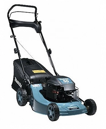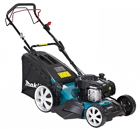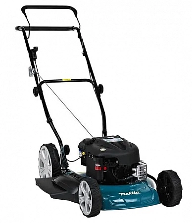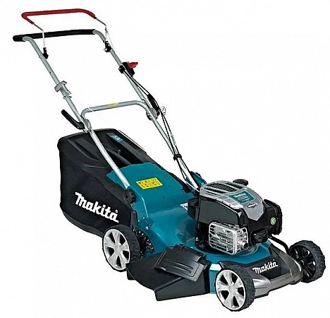 Benzines fűnyíró 4 lóerős motorral. Ez a legerősebb egység, és érdemes megjegyezni, hogy ebben a helyzetben a paraméterei egyszerűen szükségtelenek. A fűnyírási szélesség nem nőtt, és az ajánlott terület sem. Még a magasságállítás is szerényebb lett a többi Makita modellhez képest. De volt egy teljesen összecsukható kialakítás. Az itt található kések közvetlenül a tengelyhez vannak rögzítve, kivéve a szíjhajtást a rendszerből. A motor könnyen eltávolítható az ülésből.Leválasztják a fogantyút és a legkompaktabb eszközt kapják, aminek még egy kis garázsban vagy fészerben is könnyű helyet találni. Az összeszerelés sem sok időt vesz igénybe, különösen, ha megszokja.