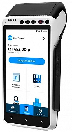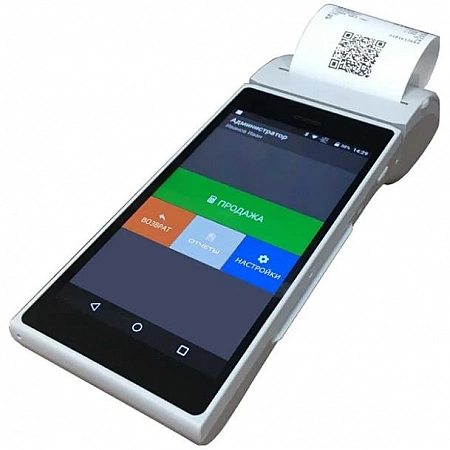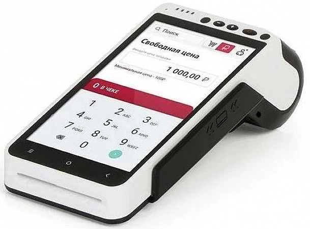Az egyik legjobb online pénztárgép, alkalmas kisvállalkozók és komoly vállalkozások számára. Más hasonló modellekhez képest kompakt méret, kényelem és megfizethető ár tekintetében nyer. A készülék önállóan működik, ezért alkalmas webáruházak futári fizetéseinek fogadására. Minden típusú kártyát támogat, beleértve az érintés nélküli fizetést is. Az előnyök közé tartozik a beépített vonalkód-leolvasó, a banki terminál és a kompakt méret. Az online pénztárgép könnyen elfér a zsebében. A hiányosságok közül érdemes kiemelni a beépített fiskális meghajtó hiányát, a nem kellően kidolgozott, nyers szoftvert, a nem túl nagy kapacitású akkumulátort, a pénztárgéppel való munkavégzéshez szükséges programok kis számát.