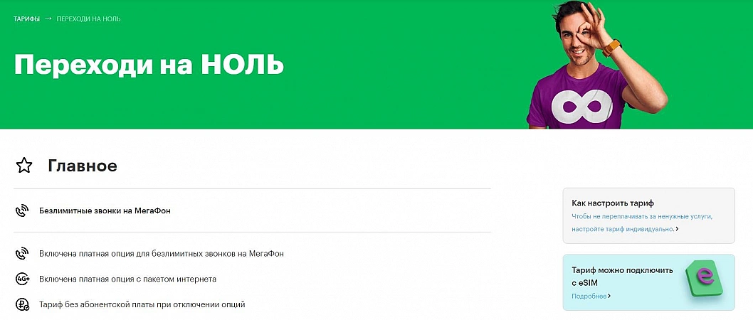 - Lehetőségek: váltás a számoddal, "Korlátlan MegaFonra", "Kényelmes internet", "Gondalommentes nyaralás"