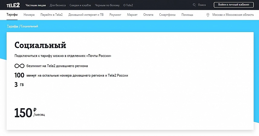 Jövedelmező lehetőség alacsony havidíjjal a Tele2-től. A csatlakozáshoz elegendő felvenni a kapcsolatot az Orosz Posta bármely fiókjával, és bemutatni egy nyugdíjigazolást, rokkantsági bizonyítványt vagy egyéb, a nyugdíjra való jogosultságot igazoló dokumentumot. A készlet korlátlan hívást tartalmaz az otthoni régió hálózatán belül és 100 percet más szolgáltatók előfizetőivel folytatott hívásokhoz. Nincs nagy forgalom, de korlátlan hozzáférés van a közösségi hálózatokhoz és az azonnali üzenetküldőkhöz: Odnoklassniki, VKontakte, Viber, WhatsApp. A Yandex.Maps és a Yandex.Navigator korlátozások nélkül is használható.Ugyanakkor még mindig jobb nyomon követni a költségeket, mivel 3 GB kimerülése után automatikusan egy további csomag csatlakozik, ahol minden 500 MB-ért 50 rubelt kell fizetnie.