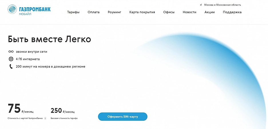 A Gazprombank Mobile rendelkezik a legolcsóbb díjcsomaggal. 250 rubelért csatlakoztatható. Ha azonban van bankkártyája, akkor az ár havi 75 rubelre csökken. Több internet van, mint olcsóbb lehetőség, de nincs korlátlan hozzáférés a közösségi hálózatokhoz és az azonnali üzenetküldőkhöz. Tehát ha használja, akkor fizetett előfizetést kell kötnie. A hálózaton belüli hívások nem korlátozottak. A fő limit kimerülése után a más cégek előfizetőivel való kommunikáció olcsó lesz. Ha azonban percek és gigabájtok maradnak, akkor átkerülnek a következő hónapba, ami nagy plusz.A hiányosságok között kiemelhetők az időszakos hálózati és kommunikációs hibák, amelyek abból adódnak, hogy az üzemeltető nemrégiben lépett piacra, és nem igazán volt ideje az összes műszaki folyamat hibakeresésére.