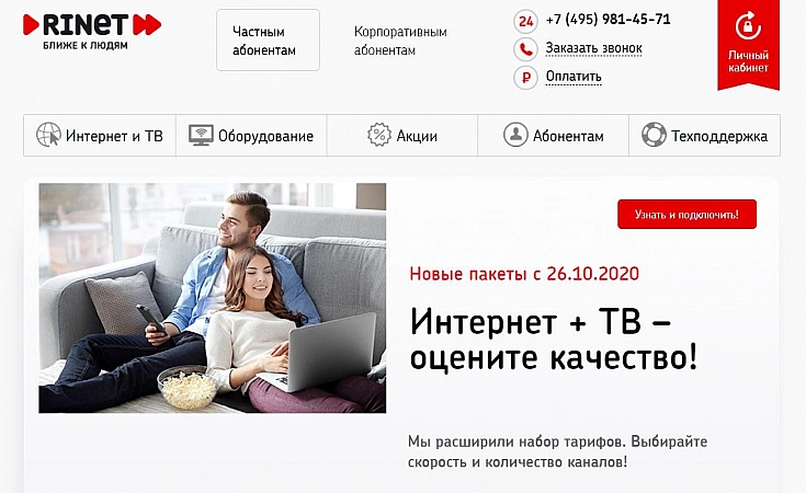 RiNet נוכחת בשוק מוסקבה מאז 1995.כיוון הפיתוח העיקרי כעת הוא חיבור משתמשים באמצעות כבל סיבים אופטיים במרכז ובדרום הבירה. הארגון מספק גישה לאינטרנט המבוססת על FOCL משלו, מחבר טלפוניה, טלוויזיה, מעקב וידאו, מערכות בקרת גישה ושירותים נחוצים אחרים. בעלי מלאכה מנוסים יבצעו עבודות בבנייני המגורים המורכבים ביותר ויכסו חדר בכל גודל עם רשת Wi-Fi. לקוחות רבים משבחים את שירות התמיכה - המנהלים נמצאים בקשר 24 שעות ביממה ומגיבים במהירות לבקשות. אולם לאחרונה, איכות השירות, כמו גם חיבורי האינטרנט, ירדה - המפעילים הפכו פחות מנומסים, כשלים ברשת הפכו תכופים יותר.