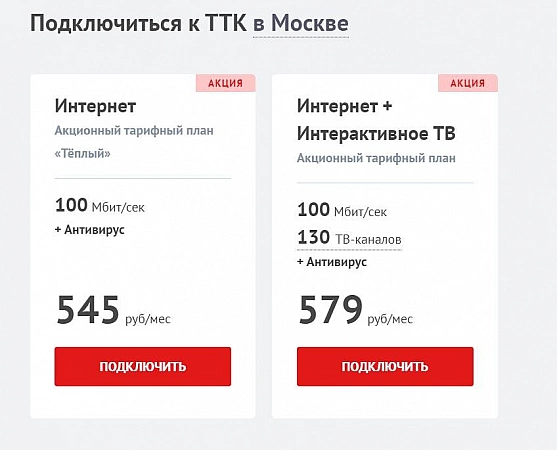 למרות העובדה שמבחר התעריפים של חברת TTK מוגבל מאוד, הוא פופולרי והוא אחד מספקי שירותי האינטרנט הזמינים ביותר במוסקבה. מבחינת מהירות, תוכניות התעריפים אינן עולות על 100 Mbps, אבל זה מספיק לשימוש ביתי.עם חיבור לחבילה תקבלו טלוויזיה אינטראקטיבית באיכות גבוהה הזמינה בכל מכשיר. מבחינת מחירים, המפעיל לא בולט בין המתחרים, אלא מציע ציוד בתוכנית תשלומים, ולא רק משכיר אותו, וזה יתרון גדול. אם אנחנו מדברים על איכות החיבור, אז באופן כללי, לקוחות מרוצים מהעבודה של האינטרנט מ-TransTeleCom, אבל מתלוננים על "הקפאות" תקופתיות.