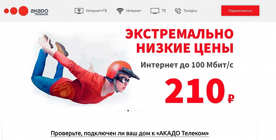 אם אתה רוצה לחבר את האינטרנט במהירות של יותר מ-100 Mbps במחיר נמוך, אז Akado היא האפשרות הטובה ביותר. תעריף עבור 200 Mbps יעלה רק 470 רובל. לחודש, ובהתחשב בהנחות קבועות, אתה יכול לרכוש את השירות תמורת 235 רובל בלבד.