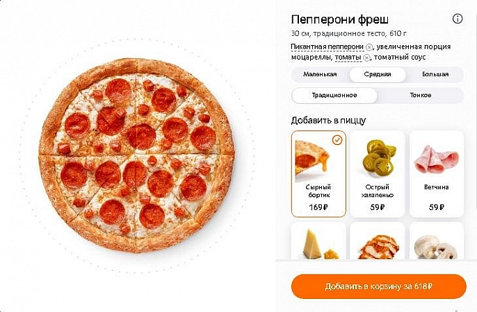 - פיצה במשקל 800 גרם עבור 560 רובל
