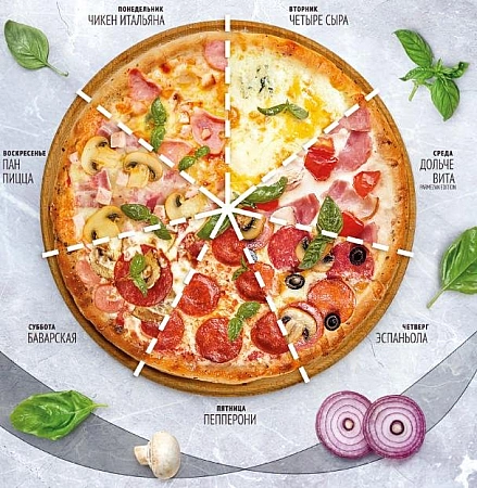 אחת הפיצריות הפופולריות ביותר ביקטרינבורג. רשת גדולה פועלת ברחבי רוסיה, בעלת מוניטין טוב. הקטלוג מכיל פיצות לכל טעם. הלקוחות יכולים לבחור את גודל, עובי הבצק, להוסיף מרכיבים נוספים: חזיר, פלפל חריף, ירקות, מנת גבינה נוספת.האתר משדר כל הזמן את כל הנעשה במטבח כדי שהלקוחות יוכלו לצפות בהכנת ההזמנה. לכן ההמתנה לא תהיה משעממת וארוכה. פיצה מוכנה ומועברת במהירות. מבין החסרונות - חלק מהקונים מתלוננים על בצק יבש, עודף מיונז במילוי. המחירים מעט גבוהים יותר בהשוואה לרוב הפיצריות ביקטרינבורג.
