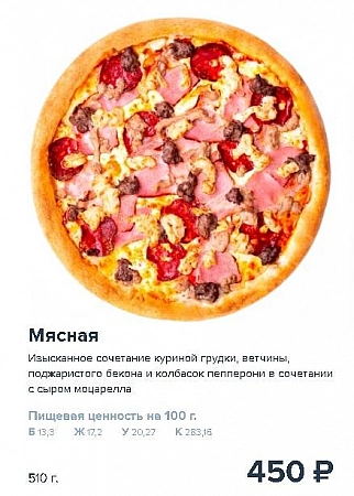 - עלות פיצה ממוצעת: מ 450 רובל.