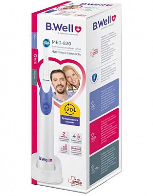 דגם זה נרכש לעתים קרובות לנסיעות: הוא פועל על סוללות, אינו דורש טעינה. הדגם הסטנדרטי של מברשת שיניים חשמלית מאפשר צחצוח שיניים בשלושה מצבים מצוידים בטיימר של שתי דקות. מהירות תנועות הסיבוב ההדדיות של הזרבובית היא 6,000 / דקה. ידית הגומי הארגונומית מספקת נוחות נוספת, והמשקל הקטן של המכשיר מקל על הליך היגייני. זיפי הזרבובית רכים למדי, כך שה-B.Well PRO-810 מתאים גם לילדים ובני נוער.