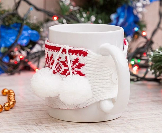 והנה עוד רעיון למתנה פשוטה ולא יקרה - שרוול ספל. זהו צעיף סרוג עם כפתור, אשר מונח על גביע, ובכך שומר על התכולה חמה. שרוול בהיר ויפה בו זמנית מבצע מספר מטרות - הוא קישוט, יוצר מצב רוח של השנה החדשה, וגם מגן על הידיים מפני שריפה עם משקה חם. מתנה מקורית כזו יכולה להתבצע במו ידיך אם יש לך כישורי סריגה בסיסיים. אבל אם אין לך זמן או כישורים מסוימים, קל יותר להזמין ולקנות אפשרויות מוכנות. העלות הזולה שלהם מאפשרת לך להציג לקבוצה שלמה של חברים "בגדים" מהנים לספל לשנה החדשה.