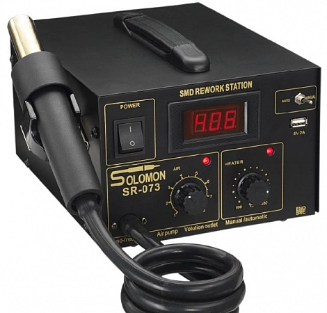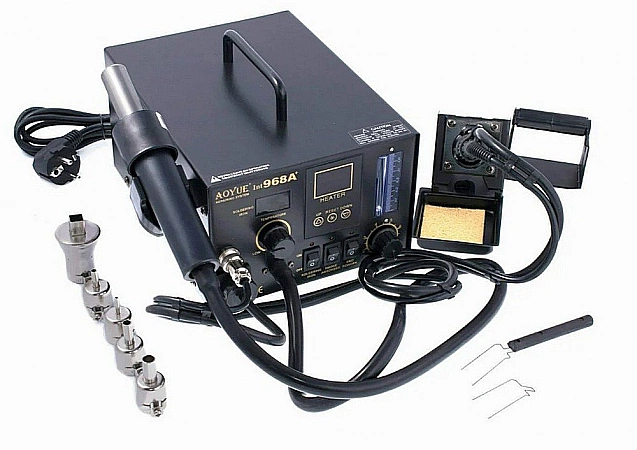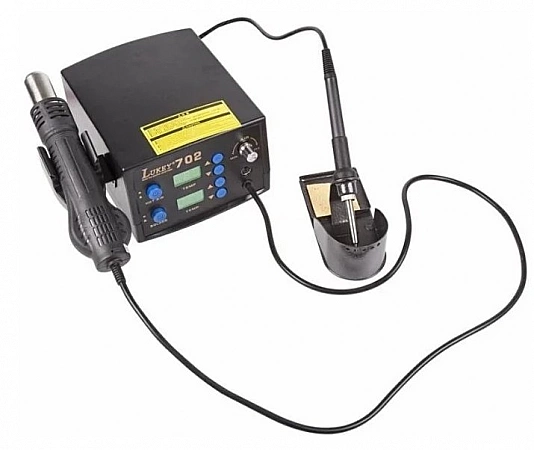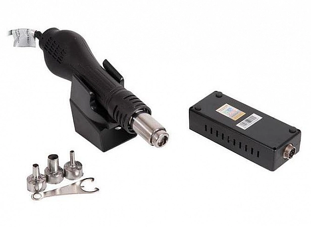 תחנת הלחמה טובה עם סט עשיר של משלוח. הערכה כוללת מתאם לשקע יורו, ארבע חרירים מתחלפים בקטרים שונים וכן גוף חימום רזרבי. יש גם הדרכה באנגלית. מאפיין ייחודי של התחנה הוא פעולתה השקטה. הטורבינה והמנוע ממוקמים בתחנה עצמה. ההרכבה טובה. הספק המכשיר הוא 580 W - הערך הממוצע. טווח טמפרטורת עבודה: 100-450 מעלות צלזיוס. מעמד המלחם קבוע בצד התחנה. התחנה לא מכוילת היטב, במהלך הפעולה קריאות הטמפרטורה צפות במשך זמן רב. הבעיה נפתרת על ידי כיול נגד הכוונון.