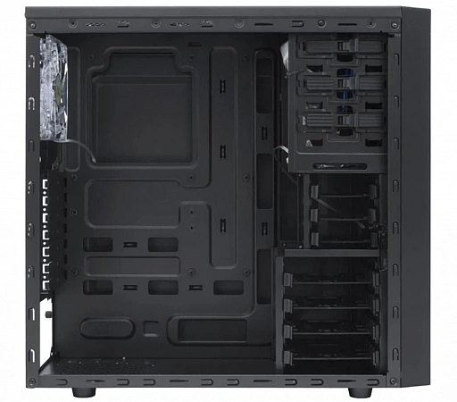זהו המקרה המינימלי שניתן להמליץ עליו היום. יש לו מספיק מקום לצידנית 155 מ"מ, בנוסף, הוא יכול להתקין כרטיס מסך בכל גודל. הערכה מגיעה עם מאוורר 1 בלבד, אך במידות מרשימות - 120x120. לא עושה רעש או רעשן. בנוסף, יש תושבות לעוד 2 מצננים.ישנם מסננים, מפרצים בגודל 5 אינץ' להרחבות שונות (קוראי כרטיסים וכו') קיימים גם כן. ניתן לקרר רק 2 כוננים קשיחים, אז למי שאוהב לשמור 2 כוננים קשיחים או יותר, אפשרות זו לא מתאימה. חומר המארז - מתכת, מאופיין בחוזק טוב. בשל הקירות הצדדיים הקמורים, אתה יכול לבצע בבטחה את ניהול הכבלים שאתה צריך. המארז בעל מראה דיסקרטי ואידיאלי לבניית מחשב גיימינג בתקציב נמוך.
