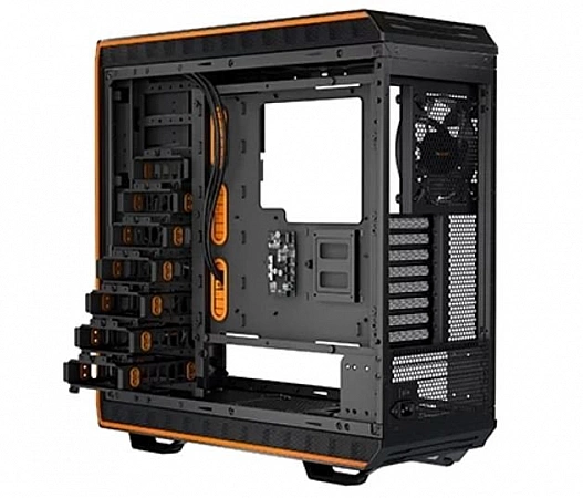 Dark Base 900 Orange הוא אוצר אמיתי בשוק בלוקי המחשב. מאווררים בו ניתן למקם גם מלמטה וגם מלמעלה. לוח האם הפוך, מה שמשפיע לטובה על היציבות והקירור. אתה יכול להתקין בה מערכת מים בכל מורכבות. בסך הכל, ממוקמים בפנים מקסימום 7 כוננים קשיחים, וזה פחות מזה של המתחרים. היכולת להתקין רדיאטורים בעלי ארבעה חלקים וקירות עם פאנלים בולמי רעש עוזרת להדביק את הקצב. ישנם כמה שיפורים בגרסה השנייה, אבל התיבה התחתונה מקלקלת את כניסת האוויר הרגילה, מה שגורם לטמפרטורה בפנים לעלות מאוד. המשקל של 14 ק"ג מעורר וגורם לך להזיע בזמן הובלה, אך בתמורה מקבלים יציבות נוספת ועמידות בפני רעידות.