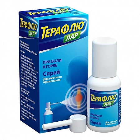 Theraflu Lar מיוצר על בסיס חומר חיטוי וחומר הרדמה, המאפשרים לו לנקוט בגישה מקיפה לפתרון בעיית כאב הגרון. זה מקל במהירות על כאב, תחושת יובש וגרד, מפחית דלקת. תרסיס זה מותר לילדים מגיל 4 ונרשם לדלקת הלוע, דלקת גרון, דלקת שקדים ועוד מספר מחלות. הטעם והריח של התרופה נראים לא נעימים לרבים, אם כי יש גם דעות הפוכות בביקורות עליה. יש צורך לקחת בחשבון את הנוכחות של לידוקאין בהרכב, אשר יכול לגרום להתפתחות אלרגיות. באופן כללי, רופאים ומטופלים מעריכים מאוד את Theraflu Lar, למרות שהם רואים בו יותר כתוסף שמטרתו בעיקר להקל על הסימפטומים.