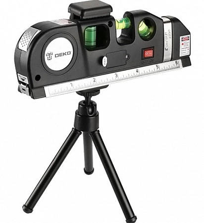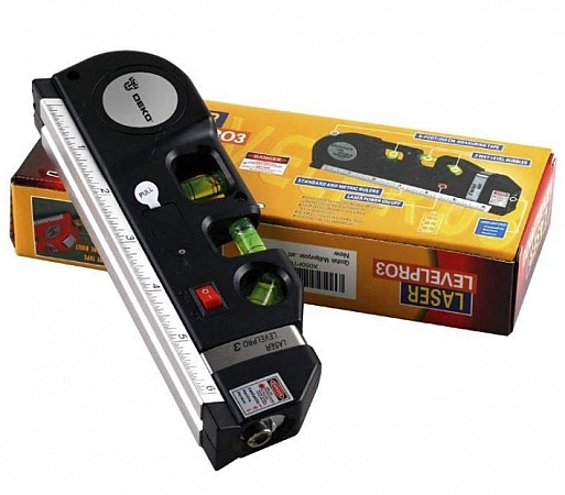 מד זה נבחר בגלל שהוא זול, קל לשימוש ורב תכליתי. זה יכול לשמש כמפלס לייזר או כמפלס טפטוף סטנדרטי. בנוסף, סרט מדידה באורך 3 מטר מובנה בתיק.