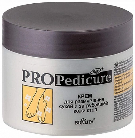קרם רגליים PRO Pedicure מיועד לטיפול מקיף בעור כף הרגל הנוטה לתירס וגידולים גסים, הוא מונע הופעת סדקים ומקדם את ריפוים. הוא ממוקם כתרופה, מכיוון שהוא מכיל 15% אוריאה, כמו גם מספר רכיבים אחרים שימושיים לעור הרגליים. היצרן טוען שהוא עוזר גם בשימוש באנשים עם כף הרגל המכונה "סוכרתית", המתאפיינת ביובש, בשכבה גדולה של עור מחוספס וכן בסדקים עמוקים וכואבים. ביקורות של אלה שכבר ניסו את קרם הרגליים הבלארוסי הזה מאשרות את היעילות הגבוהה שלו ואת העובדה שהוא באמת עוזר להפוך את הרגליים לבריאות יותר.