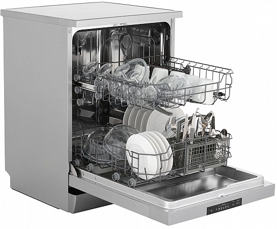 מדיח כלים בגודל מלא שעולה פחות מרוב הדגמים הצרים. עם זאת, יש לו מספיק יתרונות. ראשית, במחיר נמוך מדיח הכלים מצויד בפונקציונליות סטנדרטית: 6 תוכניות, טיימר, הגנה מפני נזילות ו-4 הגדרות טמפרטורה. שנית, יש לו סל מתכוונן נוח עם תא גדול לסכו"ם. שלישית, המכונה קלה לתפעול וחסכונית בצריכה. כמובן שגם אם לוקחים בחשבון את המחיר הנמוך, דגם זה אינו חף מחסרונותיו. הוא די רועש בפעולה, אינו שוטף היטב שומן מוקשה ושרוף, ובתחילת הפעולה הוא מריח כמו פלסטיק. בנוסף, המשתמשים צריכים להתאים את מצב 3 ב-1 בכל פעם.