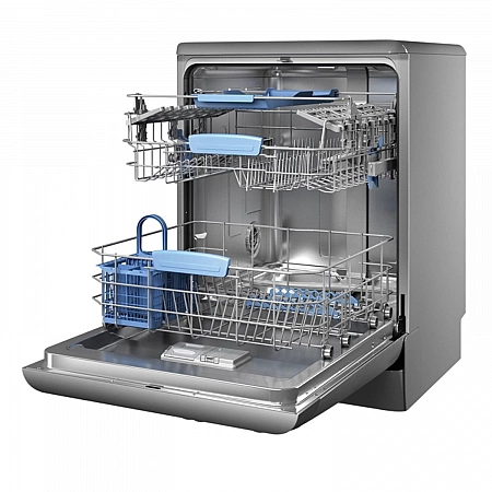 מדיח כלים בצבע כסף הוא דבר נדיר! דגם זה נראה יקר מאוד בגלל גוון הפלדה.בנוסף, הגוף כולו עשוי מציפוי שאינו משאיר טביעות אצבעות.