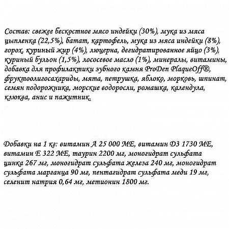למרות שהחידוש הצ'כי לא ממוקם כהוליסטי, אלא כסופר-פרימיום, רבים מהמאפיינים הטובים ביותר שלו מזכירים את ערבה פראית אקאנה האהובה. ההרכב כלל הודו ובשר עוף טרי. עם זאת, יש להתייחס לזה האחרון בזהירות לסובלים מאלרגיות, אבל רוב החתולים יאהבו את זה. יחד עם זאת, כמו באקנה, הבשר מאוזן עם חומוס ואפונה, האוכל נטול דגנים, עיסת סלק ושאר רכיבים חסרי תועלת, מכיל תפוחים וירוקים. תכונה נוספת היא גרגירים קטנים, שאפילו חתלתול קטן יכול להתמודד איתם. הקונים מציינים שהמזון נספג היטב וחתולים אוכלים אותו בתיאבון. אבל חשוב לא להתבלבל עם Brit Premium, שכן האיכות שונה מאוד.