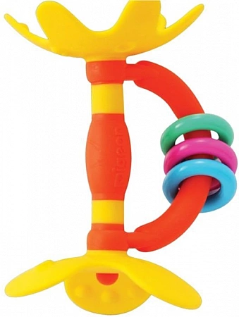 רעשן בהיר ואיכותי שמתפצפץ מעט בסיבוב.זה לא רק נשכן, אלא "razvyashka" אמיתי עם טבעות צבעוניות, משטח מרקם משתנה. עלי הכותרת של הגומי של הצעצוע מיועדים לעיסוי חניכיים יעיל. הורים מרוצים מציינים השפעה ניכרת מהשימוש במכרסמים: ילדים הרבה פחות חסרי מנוחה, ישנים טוב יותר במהלך בקיעת שיניים. המוצר אינו מריח, אין לו טעם, עשוי מחומרים היפואלרגניים עם צבעי מאכל.