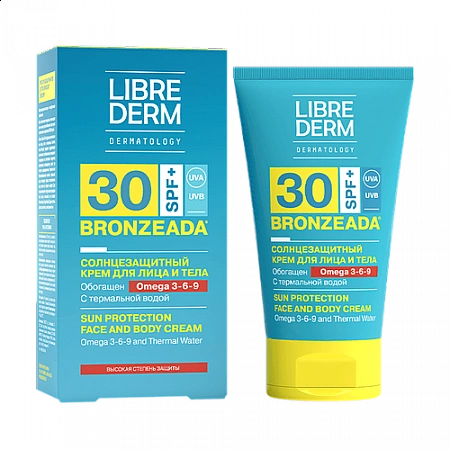 קרם לפנים ולגוף מבית Librederm על בסיס מים טרמליים ואומגה 3-6-9 נוצר כדי להגן באופן אמין על העור מפני ההשפעות המזיקות של קרניים אולטרה סגולות. מים תרמיים עוזרים להפעיל את תהליך התחדשות העור, עוזרים לשמור על הלחות. הגנה נוגדת חמצון מובטחת על ידי שמן זרעי ענבים.שמן פשתן מרווה את העור בלחות, מרכך ומזין. הקרם מיועד לעור בהיר, אך כבר מעט שזוף. מתאים גם לשיזוף הדרגתי בימים הראשונים של החשיפה לשמש. המשתמשים מציינים את העקביות הקלה שלו, המבטיחה מריחה אחידה וספיגה מעולה, הגנה טובה, עמידות במים וריח נעים. מומלץ להמתין 20-30 דקות לאחר המריחה כדי שהמוצר לא יכתים את הבגדים.