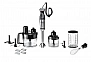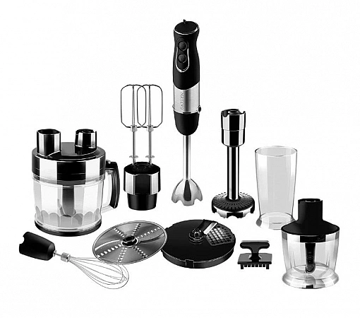 - סט שלם: מטחנה 500 מ"ל, קוצץ 2 ליטר, כוס מדידה 600 מ"ל, מטרפה להקצפה, חיבור למיקסר, פומפיה