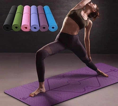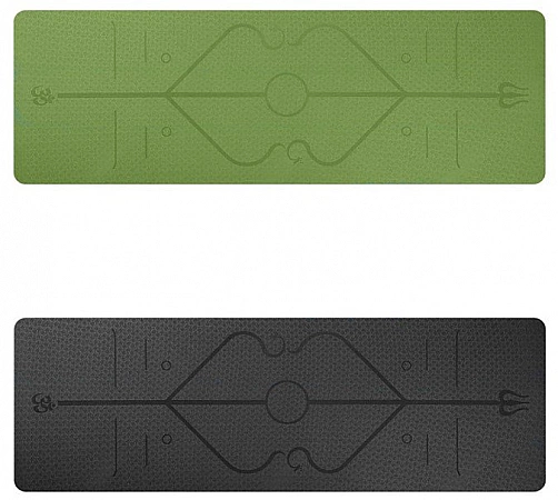 Tikar dengan latihan yang dilukis sesuai untuk mereka yang baru mula belajar yoga. Dengan itu, lebih mudah untuk mengingati kedudukan badan yang betul.