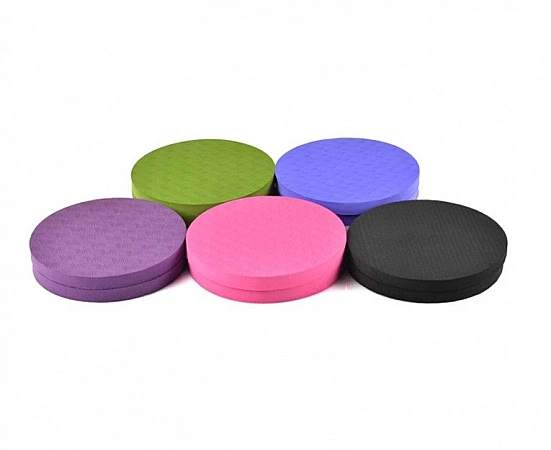 GYMTOP E04885 - satu set dua pad bulat kecil untuk menyokong siku dan lutut semasa yoga. Rangkaian ini tersedia dalam pelbagai warna, daripada hitam hingga merah jambu panas. Tikar tidak tergelincir, ia akan menjadi selesa untuk melakukan yoga atau sukan dengan mereka di mana-mana permukaan. Pembeli menulis dalam ulasan bahawa pad cukup tebal, sederhana keras dan sangat tahan lama. Warna sepadan dengan foto, tidak ada bau yang tidak menyenangkan. Kelebihan produk juga termasuk penghantaran yang cepat. Jika kita bercakap tentang kekurangan, kadang-kadang ulasan mengadu tentang pembungkusan. Penjual hanya membungkus pad dengan filem, kerana ini, penyok mungkin muncul semasa penghantaran. Tetapi mereka tidak menghalang sama sekali.