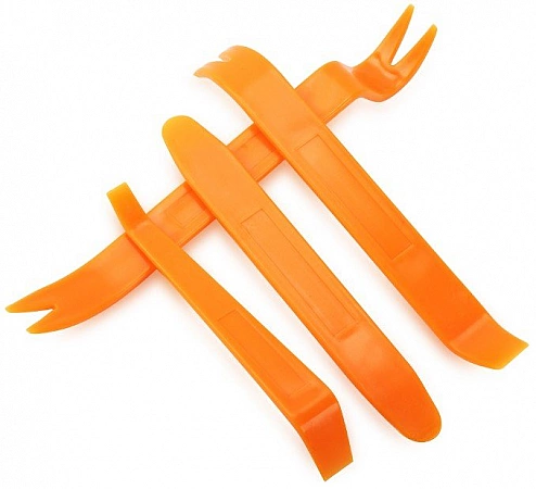 Semasa pembaikan atau penalaan kereta, selalunya perlu mengeluarkan bahagian tertentu. Kit alat untuk Hyundai Solaris dengan Aliexpress membolehkan anda melakukan ini secepat dan setepat mungkin. Set termasuk 4 bilah yang berbeza bentuk. Kesemuanya diperbuat daripada plastik oren terang, panjangnya dalam lingkungan 11-18 cm Dengan bantuan nishtyaks ini, anda boleh mengetatkan kacang, mengeluarkan sementara panel kawalan atau gril deflektor, dsb. Plastik kelihatan tipis kepada sesetengah pembeli, tetapi produk tidak pecah walaupun selepas digunakan berpanjangan. Mereka selesa dan pelbagai fungsi.