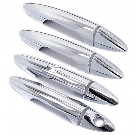 Pemegang pintu dengan cepat kehilangan persembahannya dan memberikan umur kereta. Kemasan Chrome akan membantu mengemas kini reka bentuk tanpa kos tambahan.