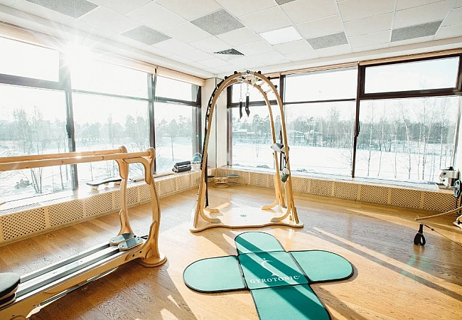 Kelab kecergasan mengamalkan sistem paling selamat yang boleh digunakan oleh seseorang dari sebarang umur dan kecergasan fizikal.Latihan mengenai Sistem Pengembangan GYROTONIC tidak membebankan tulang belakang dan sendi, tetapi pada masa yang sama melatih semua kumpulan otot.