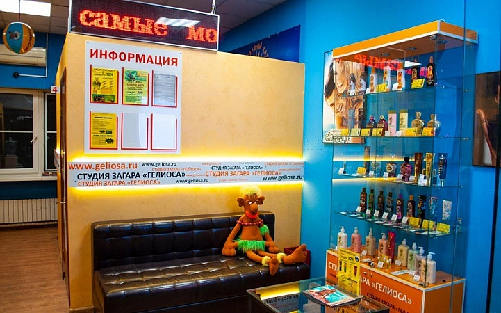 Rangkaian salun kecantikan "Helios" membuka pintunya kepada pelanggan setiap hari. Ia menawarkan pelbagai perkhidmatan, termasuk studio penyamakan. Solarium menegak yang unik TAN DOM-II-230 menjadi kebanggaan istimewa, lampunya dibezakan oleh kuasa maksimum, yang meningkatkan kelajuan tan sekata. Para tetamu boleh memilih daripada pelbagai jenis kosmetik profesional yang boleh mempercepatkan dan menyatukan hasilnya. Semua dana boleh dibeli di kedai. Menurut ulasan pelanggan, terdapat perkhidmatan yang sangat baik, tempat letak kereta percuma, harga yang berpatutan. Antara kekurangan: terdapat beberapa kabin penyamakan (2-3 untuk setiap salon), sukar untuk dilalui untuk temu janji.