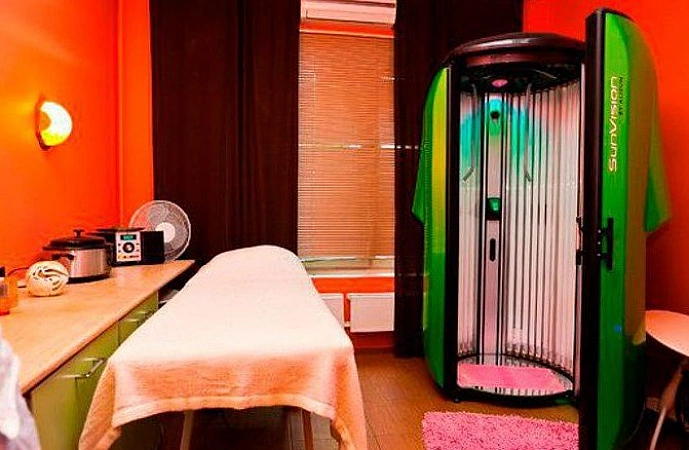 Studio penyamakan "Laguna" terkenal dengan solarium kelas VIP turbo-menegak dan mendatar Itali dan Jerman. Berikut ialah lampu yang lebih selamat dan cekap.