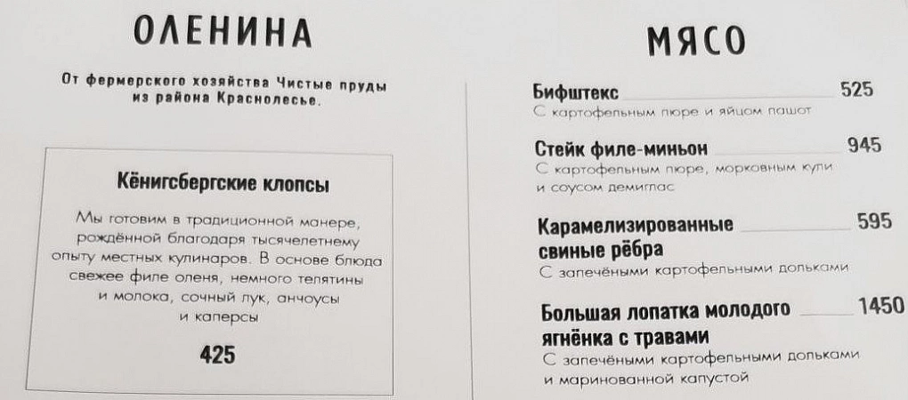 Para tetamu bandar dan Kaliningrad sendiri menganggap restoran ini sebagai yang terbaik dalam menyajikan hidangan. Makanan di sini bukan sahaja cantik, tetapi juga sangat lazat.