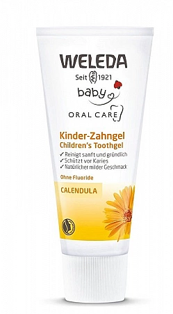 Jenama Jerman Weleda menghasilkan pes gel calendula yang berkesan dan selamat, yang sesuai untuk penjagaan lengkap gigi kanak-kanak.Komposisi tidak mengandungi pewarna, perasa dan pengawet, tetapi terdapat ekstrak tumbuhan yang berguna untuk mengekalkan kesihatan mulut. Pes ini selamat untuk ditelan, yang membolehkan ia digunakan pada kanak-kanak dari saat gigi pertama mereka tumbuh. Walaupun kos yang tinggi, ramai ibu bapa memilih ubat khusus ini untuk anak-anak mereka, hanya meninggalkan ulasan yang baik tentangnya, secara berasingan menyatakan kekurangan rasa manis. Pada kanak-kanak, pes tidak menyebabkan ketidakselesaan, membantu dengan cepat membiasakan diri dengan kebersihan.