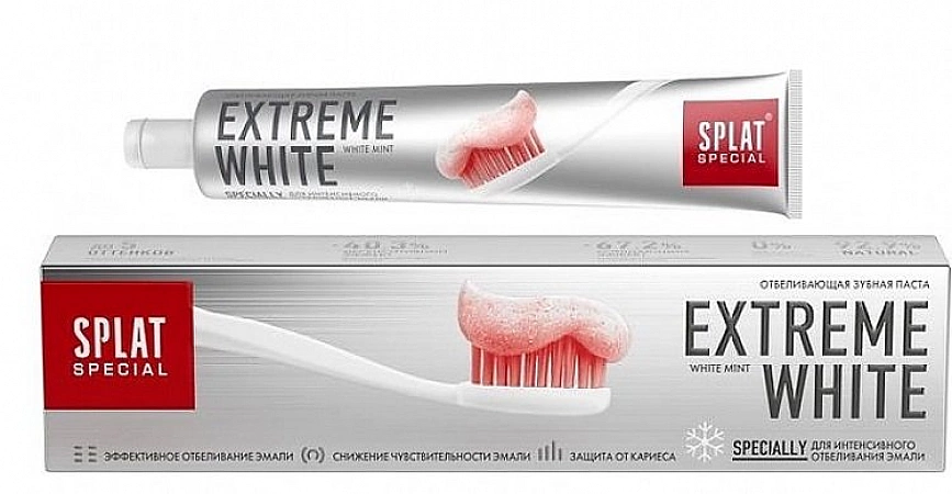 SPLAT Professional Ultracomplex menjamin penjagaan menyeluruh dan penyelesaian kepada kebanyakan masalah mulut. Pes ini memutihkan enamel dengan lembut tanpa meningkatkan sensitiviti dan membantu menguatkan. Enzim semulajadi dalam komposisi membantu menjadikan pembersihan lebih baik dan lebih cekap, ion zink mempunyai kesan positif terhadap kesihatan gusi.Alat ini sangat popular, menerima banyak pujian. Daripada kekurangannya, orang hanya perhatikan sedikit kesan pemutihan atau ketiadaannya sepenuhnya. Alat ini agak murah, terutamanya dalam hal membeli tiub besar 100 gram. Pek 40g adalah pilihan yang bagus untuk perjalanan.