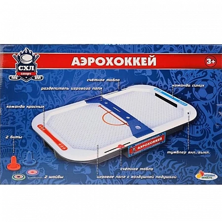 Pilihan pegun yang sangat baik untuk rumah, direka untuk kanak-kanak dari 3 tahun. Permainan hoki udara ini mempunyai enjin yang besar dan keping supaya bayi tidak menelannya, serta bidang 45 kali 28 cm, memberikan ruang untuk bergerak.