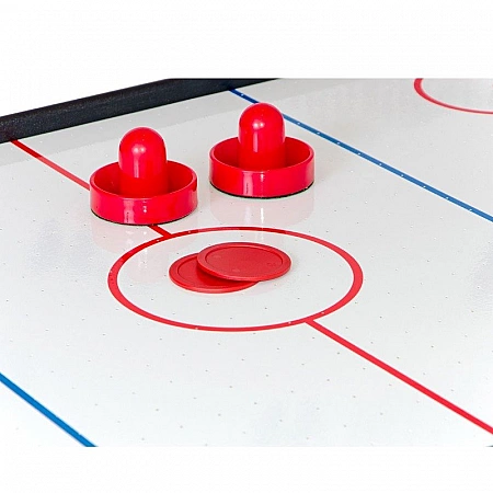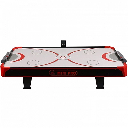 Pembangunan syarikat DFC telah menjadi kompromi yang baik antara meja permainan bersaiz penuh dan set kanak-kanak yang ringkas. Dengan saiz padang 58 kali 28 sentimeter, hoki udara akan mudah dimuatkan di bawah katil atau di atas almari, menjadikannya mudah untuk disimpan.