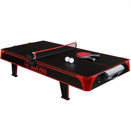 Model ini unik kerana hoki udara adalah yang utama, tetapi bukan satu-satunya tujuan. Dengan bantuan medan tambahan yang disertakan bersama kit, meja permainan boleh diubah dengan mudah menjadi gelanggang tenis mini dengan semua yang anda perlukan.