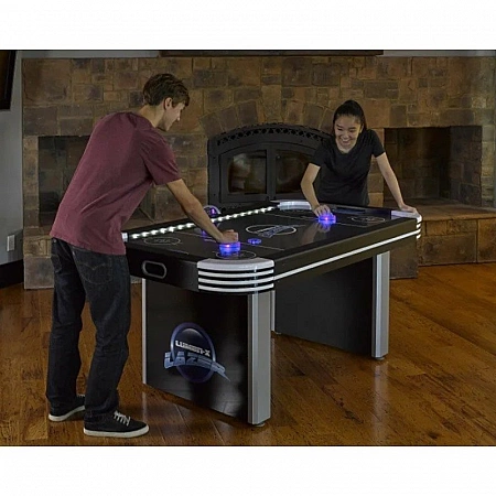 Pencahayaan LED Lumen-X Lazer yang berwarna-warni dan papan mata yang besar dengan runut bunyi menjadikan permainan hoki udara lebih mengujakan dan menetapkan mood untuk seluruh bilik. Walau bagaimanapun, ia adalah sangat mudah untuk diselenggara.Kabel USB untuk mengecas aksesori bercahaya disertakan, dan meja permainan itu sendiri disambungkan ke rangkaian menggunakan kord sepanjang 1.8 meter. Ini membolehkan anda meletakkan permainan di tempat yang sesuai, dan bukan hanya di dinding. Lantai yang tidak rata tidak akan menjadi penghalang - kaki meja dilengkapi dengan bicu, jadi paras mudah diratakan. Atom hoki udara boleh dipanggil salah satu yang paling dinamik. Sebagai tambahan kepada permukaan yang digilap dengan sempurna, ia menerima dua peminat yang kuat, yang mana puck itu benar-benar terbang. Secara amnya, jadual itu mewajarkan sepenuhnya harganya yang terlalu tinggi.