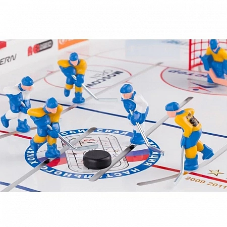 Sesuai untuk mereka yang mahukan hoki seperti pada tahun-tahun Soviet, hanya lebih baik dan lebih maju dari segi teknologi. Model ini dilengkapi dengan papan skor elektronik dengan kira detik. Ia boleh dihentikan jika perlu. Pucks juga dikira oleh elektronik.