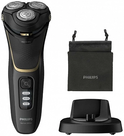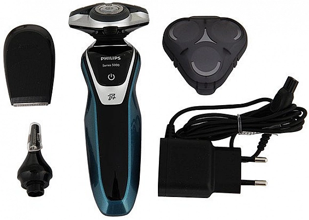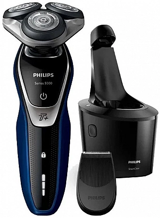 Pencukur putar lelaki Philips dengan pengecas dan pembersih yang disertakan. Model ini juga mempunyai fungsi pengecasan pantas (5 minit untuk satu pencukuran), mod Turbo +, yang meningkatkan kuasa peranti sebanyak 10%. Berdasarkan ulasan, pencukur elektrik ini melakukan kerja yang sangat baik dengan pencukuran kering dan basah. Benar, selepas 1-3 penggunaan pertama, kerengsaan muncul pada kulit: anda perlu membiasakan diri dengan peranti. Pemilik biasanya mengesyorkan bahawa pemula tidak menggunakan model ini serta-merta dalam mod turbo dengan cukur kering.Adalah lebih baik untuk memulakan dengan basah tanpa tekanan yang kuat.