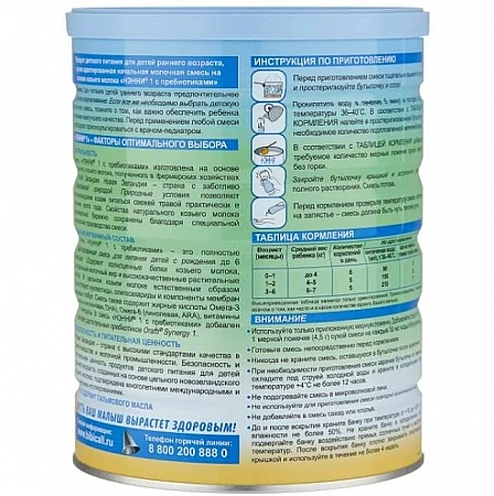 Campuran yang murah, tetapi berkualiti tinggi dan popular untuk kanak-kanak dari satu tahun. Pada kos yang berpatutan, ia memenuhi sepenuhnya keperluan pemakanan kanak-kanak, bagus untuk penyusuan campuran.