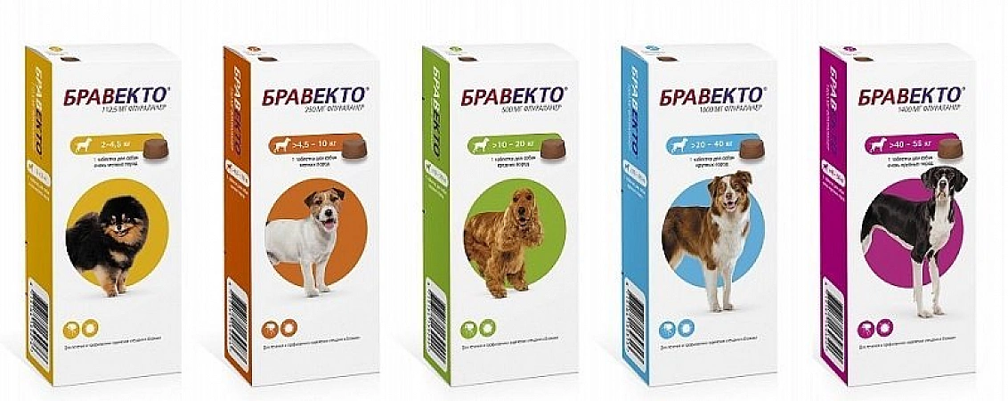 Tablet kutu dan kutu Bravecto direka untuk memberikan perlindungan yang tahan lama dan berkesan terhadap parasit ini. Pengilang memastikan bahawa ia adalah mudah untuk pemilik haiwan baka yang berbeza untuk menggunakan produk dan menyediakan pilihan dos untuk anjing seberat 2 hingga 56 kg dan dengan kandungan bahan aktif 112.5 hingga 1400 mg. Tablet paling kerap dijual dalam 1 keping, ia agak mahal. Satu dos sudah cukup untuk melindungi haiwan daripada kutu dan kutu selama 12 minggu, yang merupakan salah satu petunjuk terbaik. Bravecto ialah tablet kunyah dengan rasa yang menyenangkan untuk anjing, jadi mereka boleh makan ubat itu sendiri dengan mudah. Anak anjing dibenarkan dari umur dua bulan. Ubat itu dianggap agak selamat, tetapi terdapat ulasan bahawa anjing itu berasa tidak sihat selepas mengambil ubat, terdapat muntah.