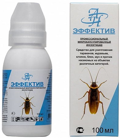 Penyediaan mikroenkapsul "Berkesan" dari kumpulan piretroid adalah penyelesaian seimbang untuk memerangi pepijat di rumah persendirian, di rumah desa atau di apartmen. Ia mempunyai salah satu harga yang paling menarik di kalangan kawalan perosak yang berkesan tanpa bau, dan juga membantu dengan cepat menyingkirkan serangga. Dan ini disahkan oleh beratus-ratus ulasan yang berpuas hati. Ia sangat mudah digunakan, tetapi botol 50 ml, yang paling kerap dijumpai dalam jualan, mungkin tidak mencukupi untuk pemprosesan semula yang diperlukan mengikut arahan.Bau dadah benar-benar tidak hadir, walaupun dalam beberapa ulasan mereka melihat bau yang tidak menyenangkan. Walaupun dengan pengumpulan besar perosak, adalah mungkin untuk menyingkirkannya selepas 2-3 minggu.